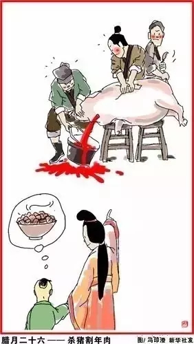 腊月二十六(1月23日),杀猪割年肉,人们只在一年一度的年节中才能吃到肉。